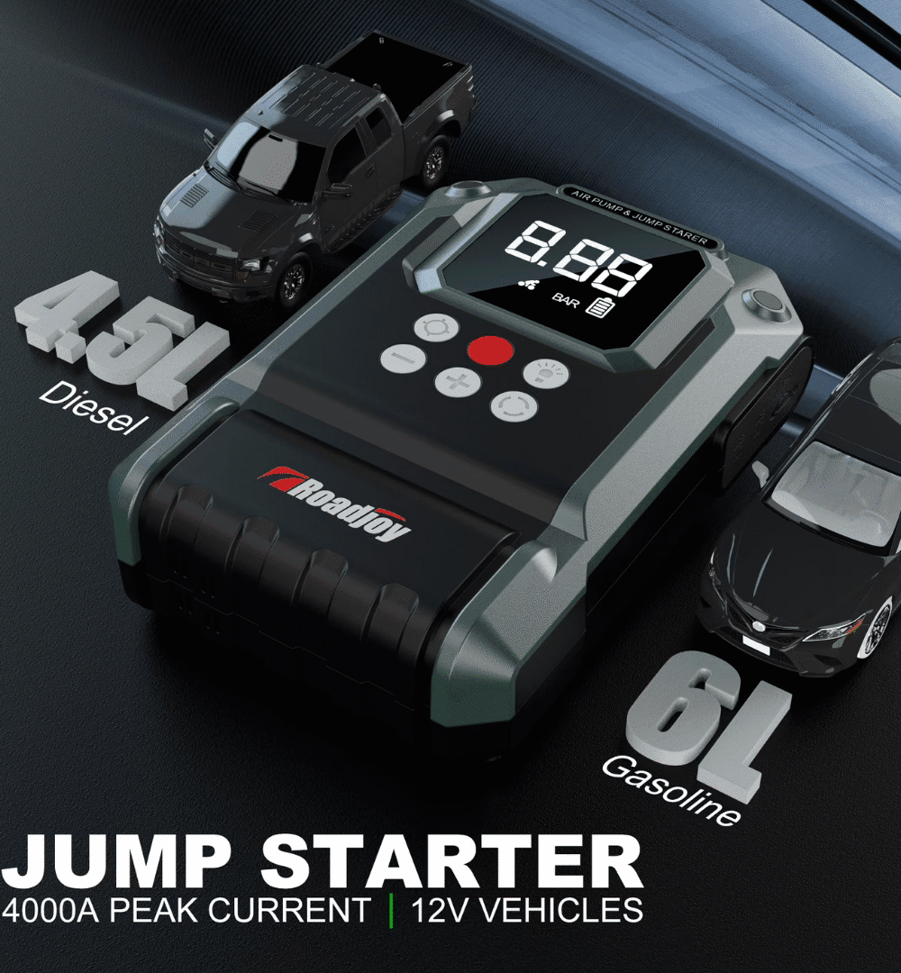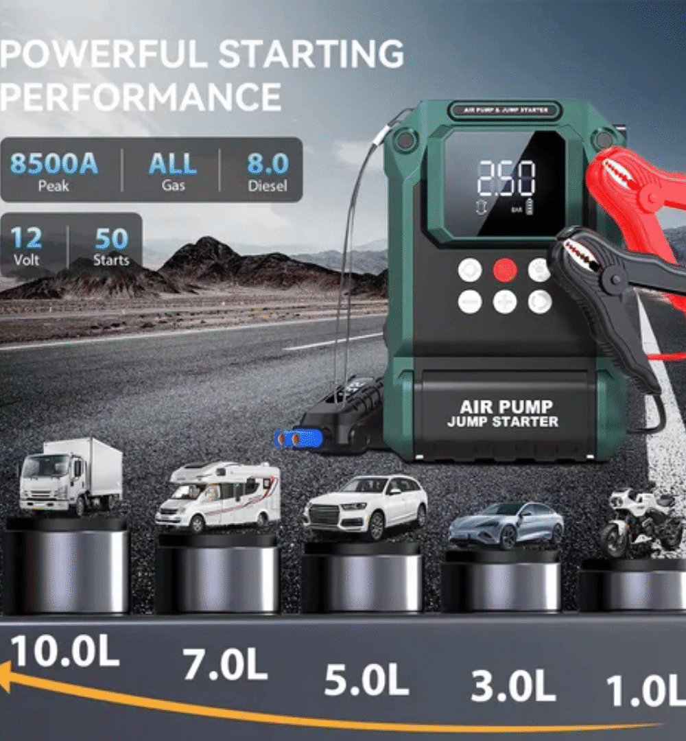 Heavy-Duty 12V Car Jump Starter with Air Compressor & 10000mAh Power Bank