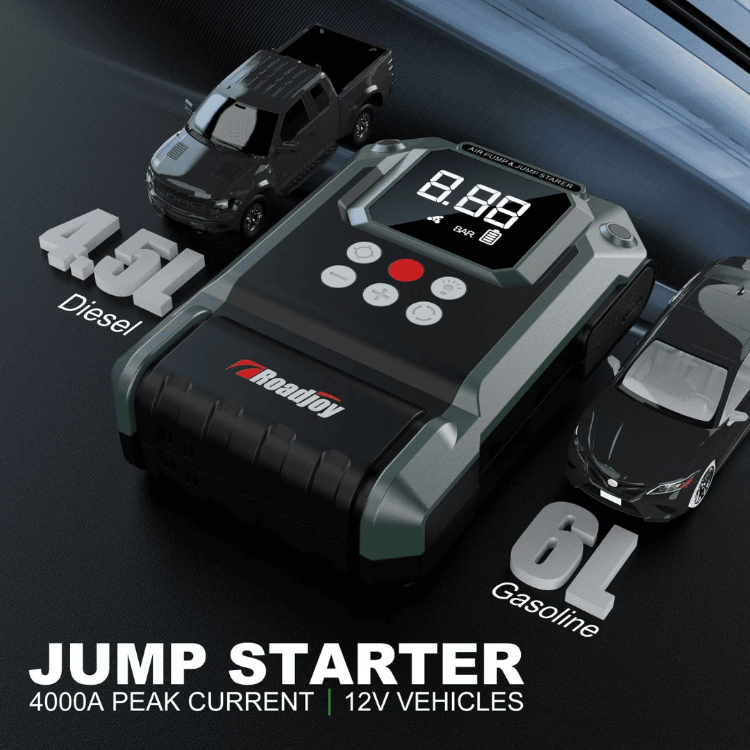 Heavy-Duty 12V Car Jump Starter with Air Compressor & 10000mAh Power Bank